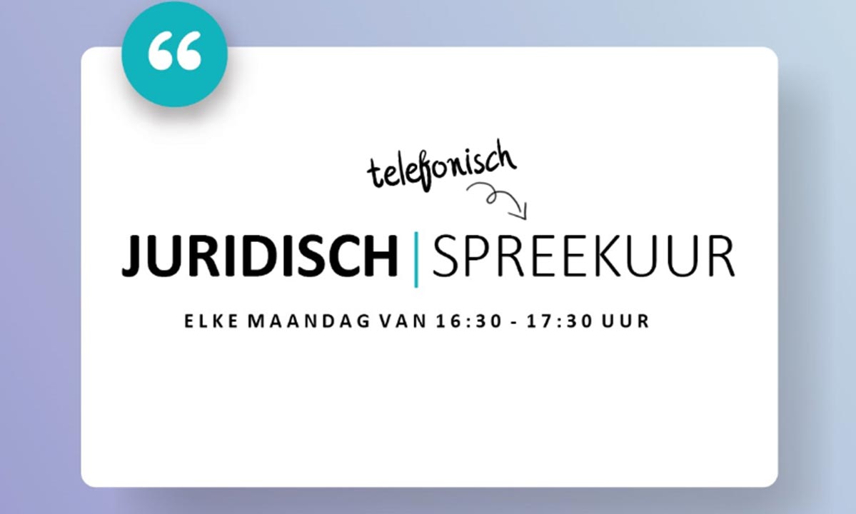 Heeft u een juridisch probleem en kunt u daar hulp bij gebruiken? Bel ons dan. Iedere maandag kunt u tot 15:00 uur bellen en uw vraag en telefoonnummer achterlaten. U wordt dan tussen 16:30 en 17:30 uur door een van onze specialisten van het desbetreffende rechtsgebied teruggebeld.